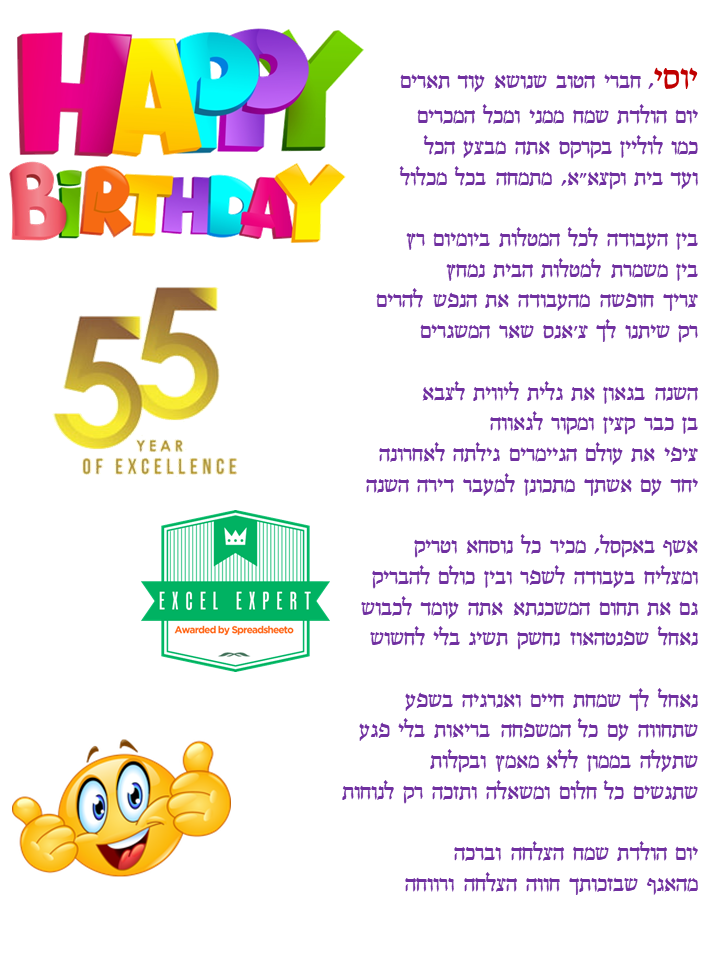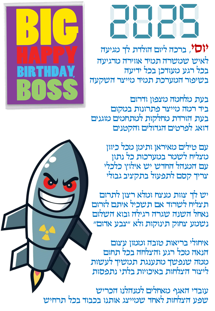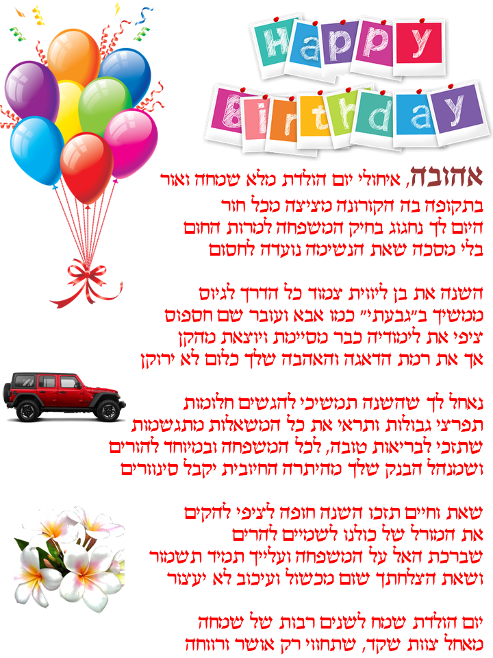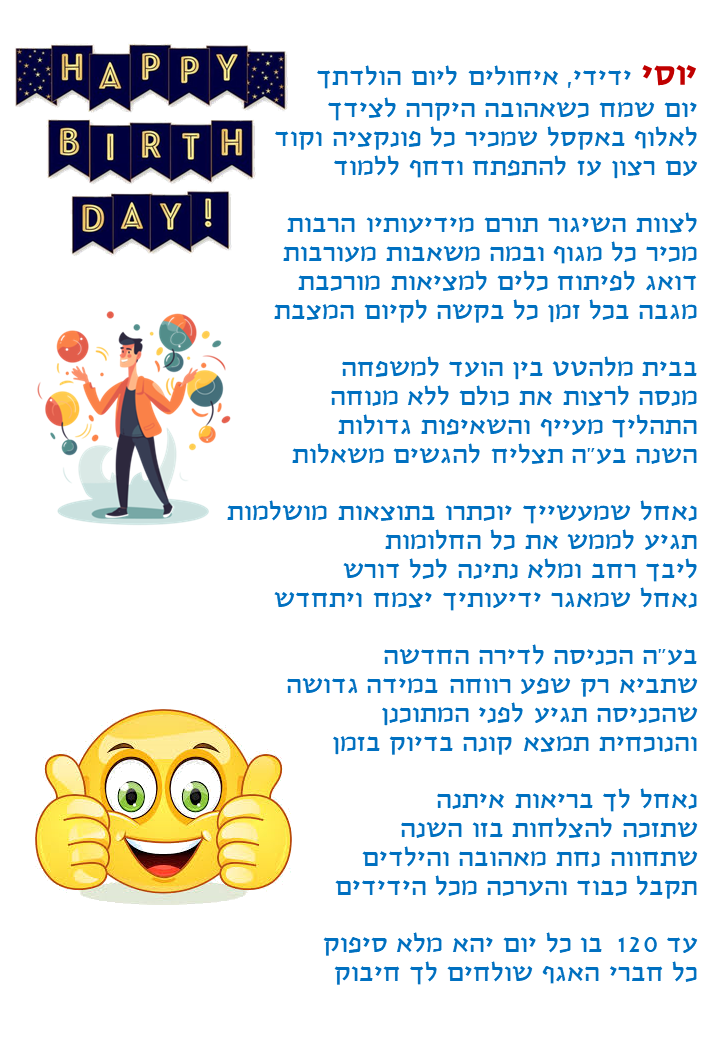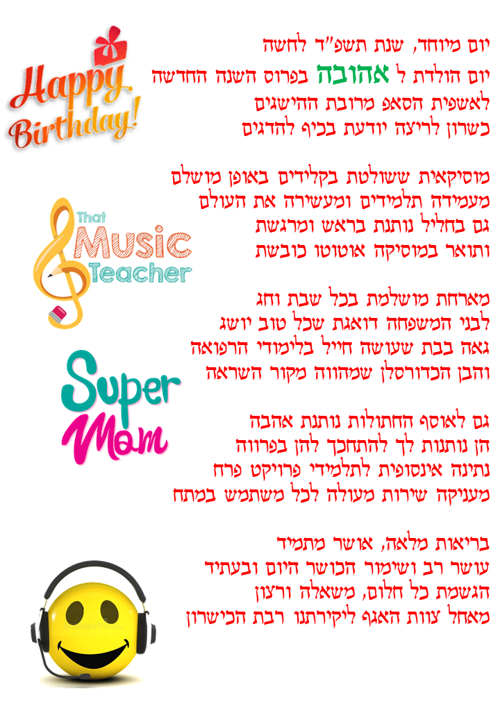 התהליך משלב אלמנטים אקטואליים, אירועים בחיי המקבלים ,עיסוקם ושאיפותיהם בחיים, כל זאת בחריזה שובבה ומרעננת שמפרגנת למקבל/ת ביום המיוחד שלהם.