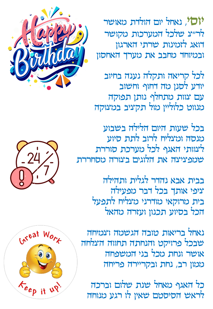לאחר כתיבת אלפי ברכות במשך מעל ל 5 שנים, ראינו לנכון להביא את הבשורה לקהל העובדים בארגונים ממשלתיים ופרטיים.
