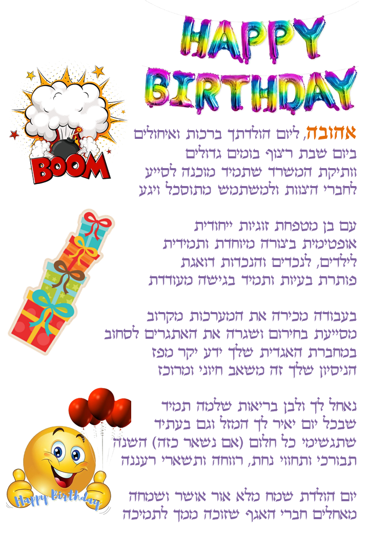 השירות מציע הפקת ברכות יום הולדת מעוצבות ומותאמות אישית למקבל/ת הברכה, בקלות רבה.